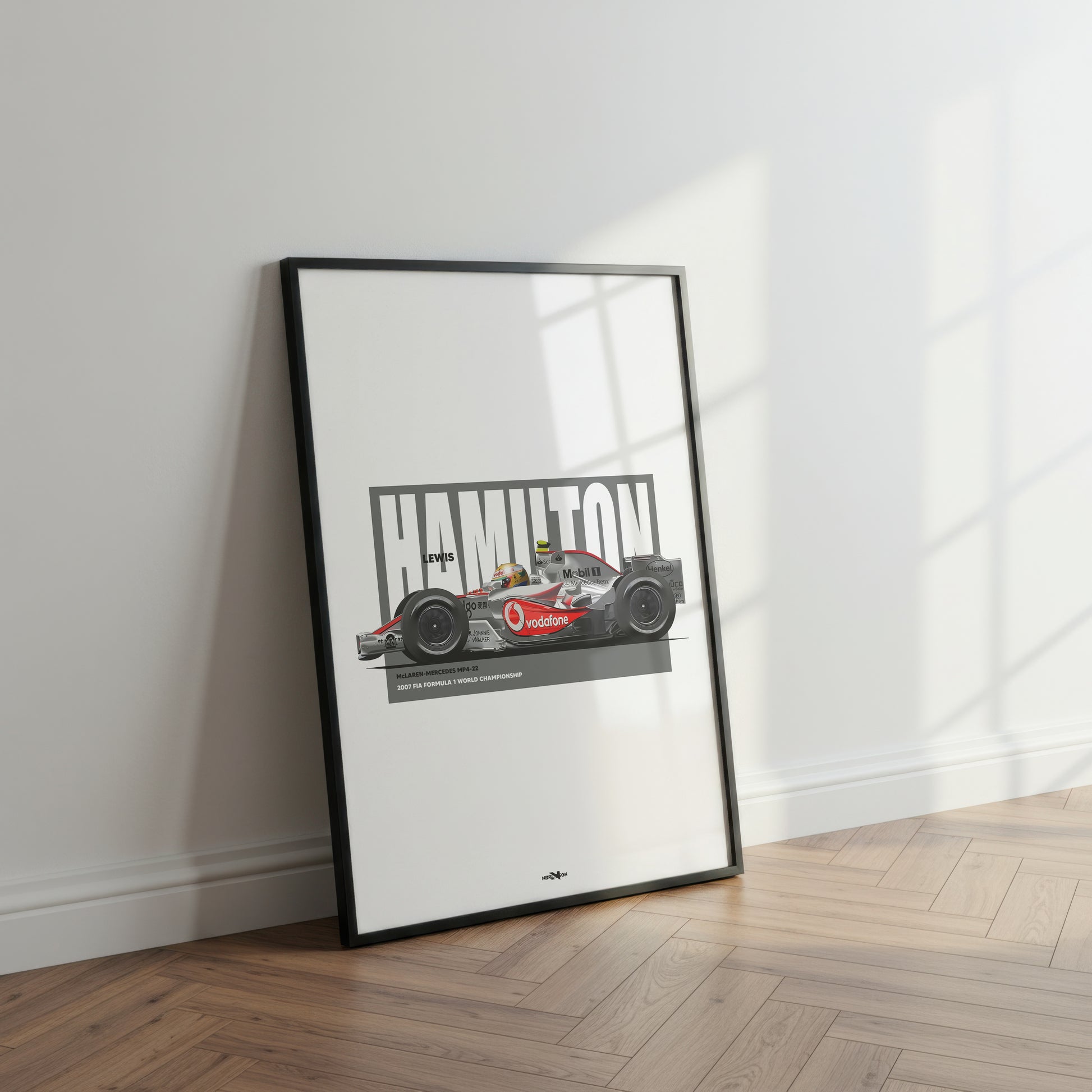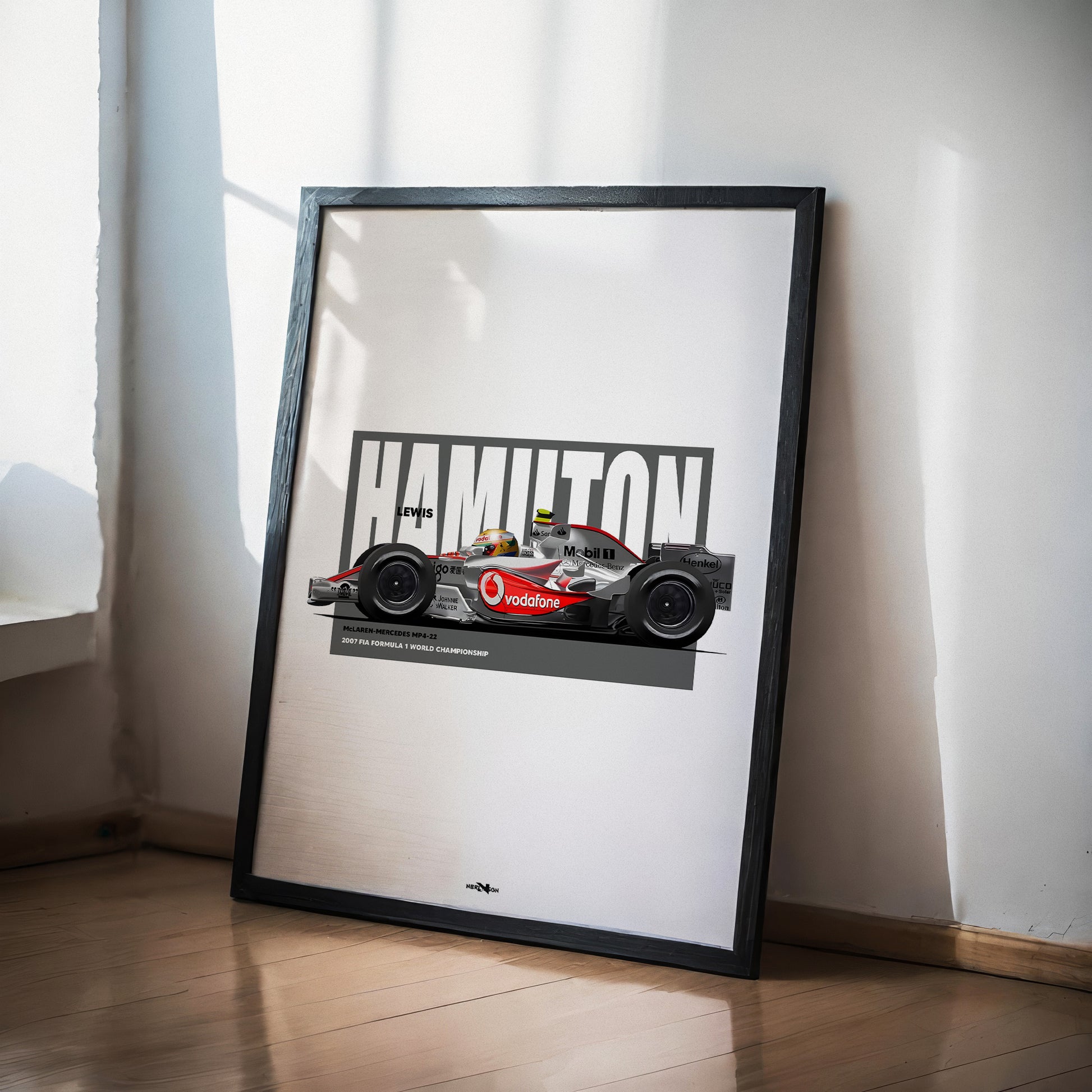 This poster captures the spirit of Hamilton’s breakthrough season — the precision, the confidence, and the raw speed that marked the arrival of a future World Champion. Designed with sharp detail and minimalist balance, it’s a striking addition to any motorsport lover’s collection, whether displayed in a home office, studio, garage, or living space.