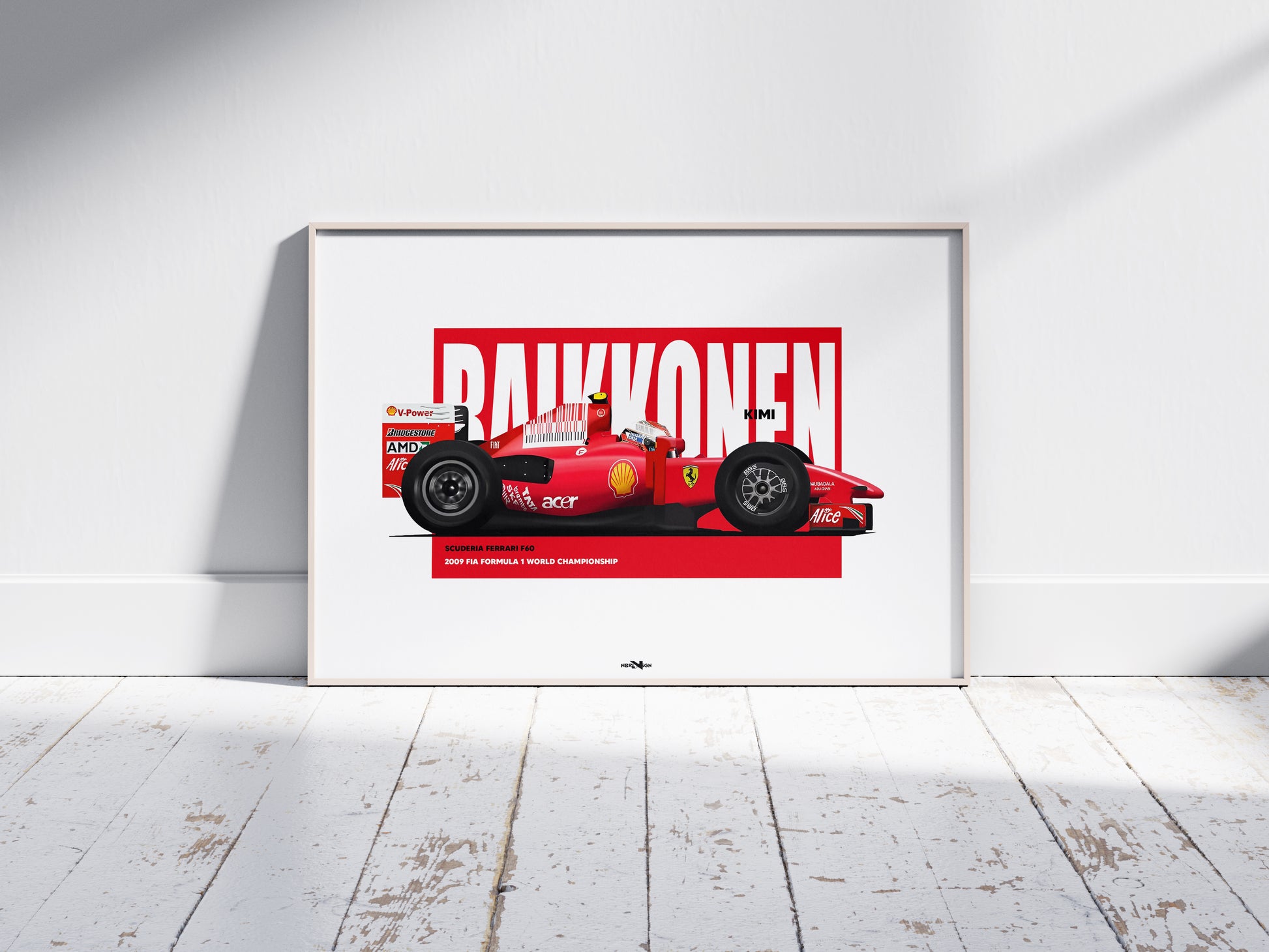 Whether you’re a Ferrari fan, a Kimi Räikkönen admirer, or simply love the artistry of Formula 1 design, this poster brings the spirit of 2009 back to life — a tribute to speed, innovation, and passion that belongs on every racing fan’s wall.